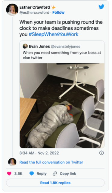 Im Jahr 2017, als Elon Musk das Model 3 hochfuhr, schlief er auf den Böden seines Werks in Freemont, Kalifornien. Dies wurde als Symbol für seine außergewöhnliche Arbeitsmoral gedeutet.